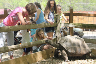 On Friday while we were in Pennsylvania we headed to Living Treasures and it was a lot of fun. It is a great place for kids. They all seemed to love it. Thanks for the great idea and plans Jill. We couldn't decide what to do because we had to be at the wedding rehearsal on Friday evening, the girls and their mom's had school, and we didn't know what the weather was going to be like so we couldn't decide. So finally Jill decided that she would take a half day off school and that the girls would as well and we would head to this zoo and check it out pending the weather. Well, the weather ended up being wonderful so we headed on and I am sure glad we did. It was a really neat place where you got to get really close to the animals and you got to feed most of them. They really loved that - even Maya! One of the really neat things that happened while we were there was that one of the goats had some babies while we were there. We didn't actually see the birth (thank goodness - although it would have been pretty neat) but we did see them just moments later. It was so neat and gross at the same time. I am sure glad my kids are to young to ask to many questions!! Anyway, we got to see the babies stand up and walk for the first time and Blakely even got to pet one of them. It was the neatest thing. We just couldn't stop watching them. I think the older girls learned more here today than they would have at school. It was a fun afternoon and again THANK YOU Jill for taking us. Off to the rehearsal we go....